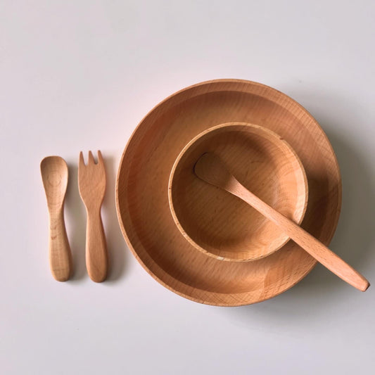 5-Piece Natural Wooden Children’s Tableware Set - Grandeck Sky