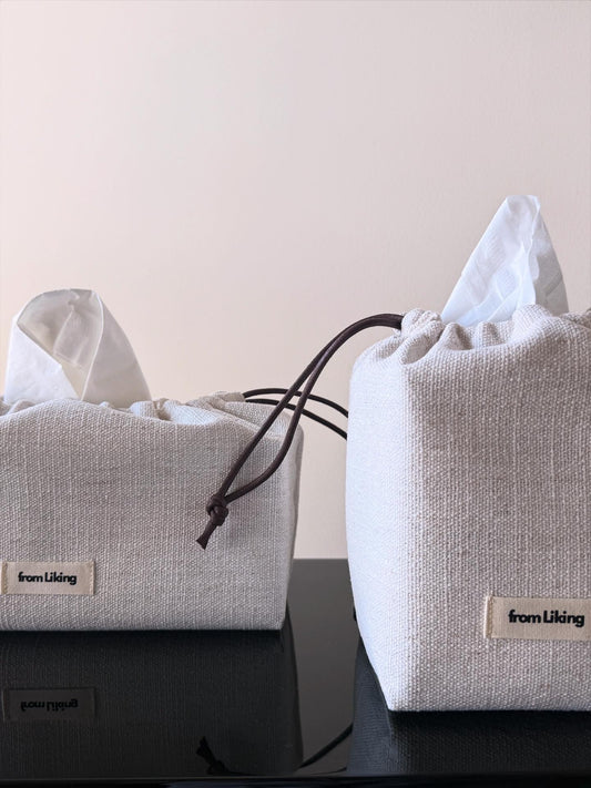 Tissue box cover - drawstring pouch